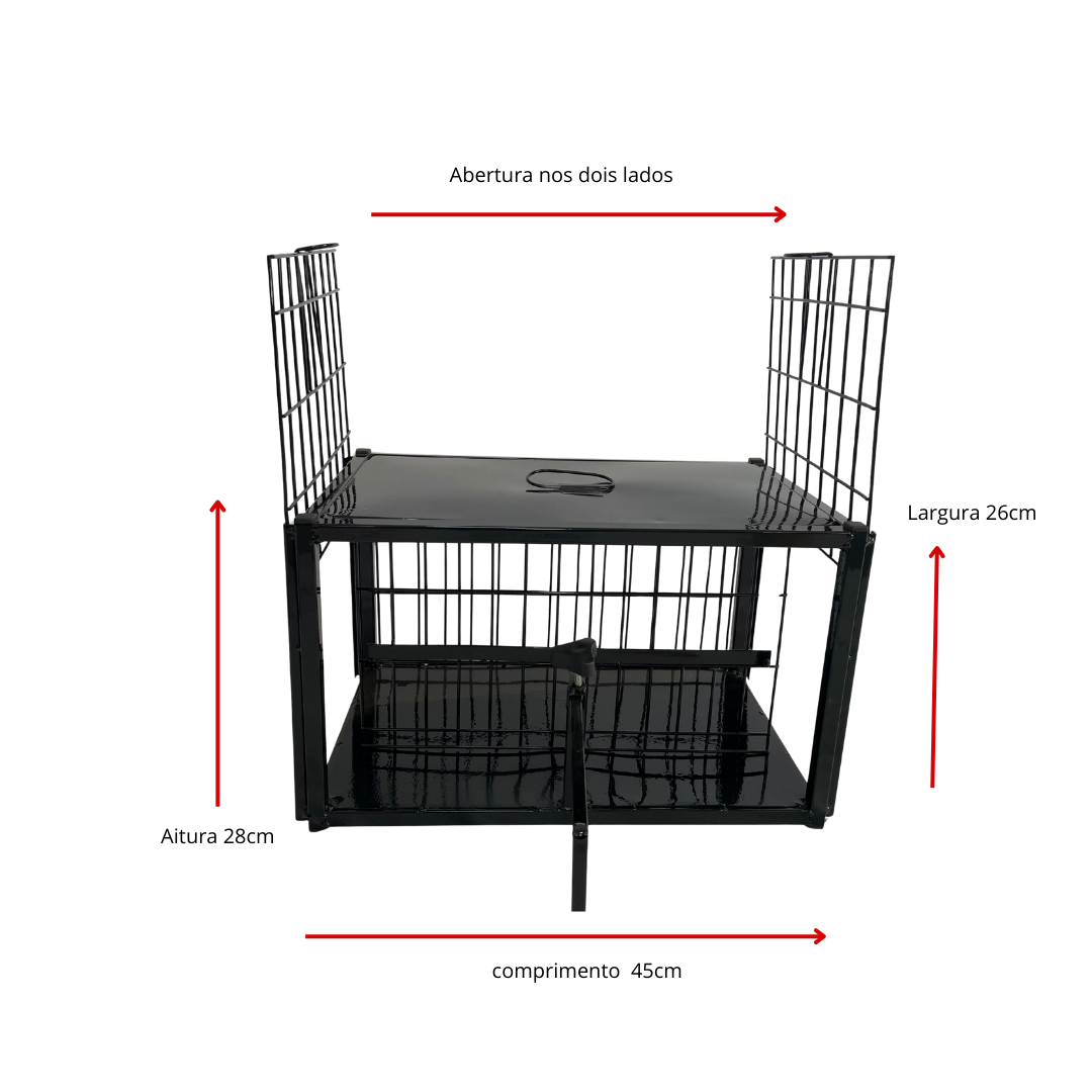 • Acesso Facilitado: A estrutura aramada oferece total visibilidade e permite a aplicação de injeções (vacinas, sedativos) e outros tratamentos através das grades.